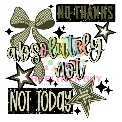 No Thank You Army Green - Printed Vinyl Decal This decal is printed on clear vinyl using UV ink. A white layer of ink is applied under the design, ...