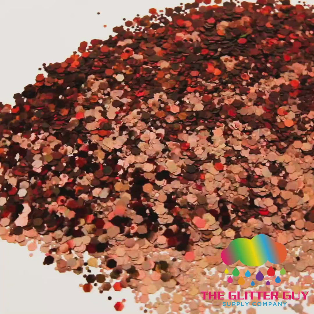 Cerberus is a chunky mix of various sized holographic brown hexagonal cut glitter.