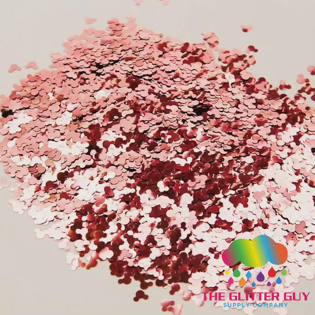 Rose Gold Mice is metallic rose gold mouse head shape cut glitter.