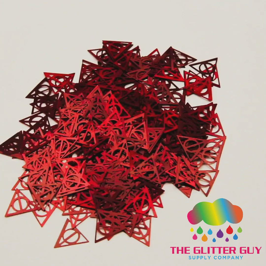 Crux is holographic red wizard symbol shape cut glitter.