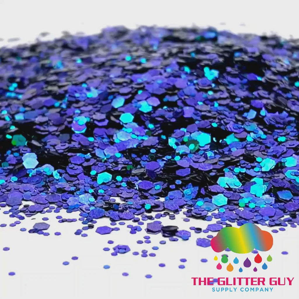 Pascal is a chunky mix of various sized color shifting green and purple hexagonal cut glitter.