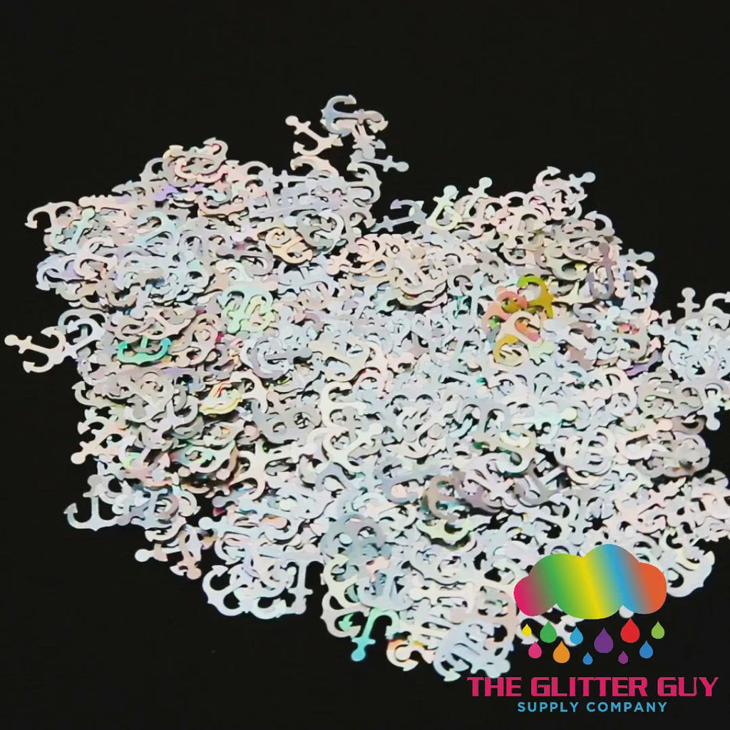 Anchors Aweigh is holographic silver anchor shape cut glitter.