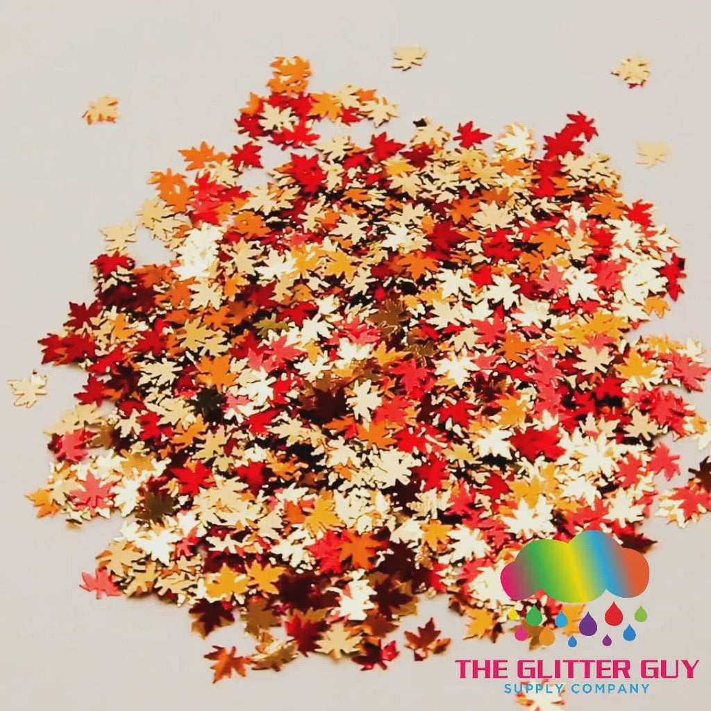 Colors Of The Wind is metallic orange, red, yellow/gold and silver leaf shaped cut glitter.