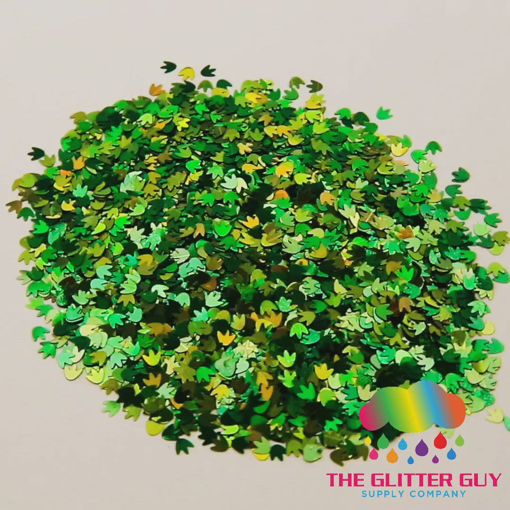 Not The Mama is holographic dark and light green dino foot shape cut glitter.