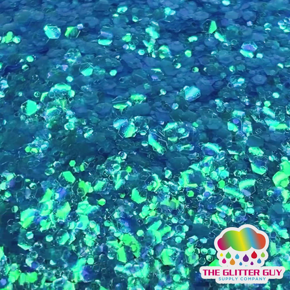 Oceanic is various sized blue Hack’d™ hexagonal cut glitter.