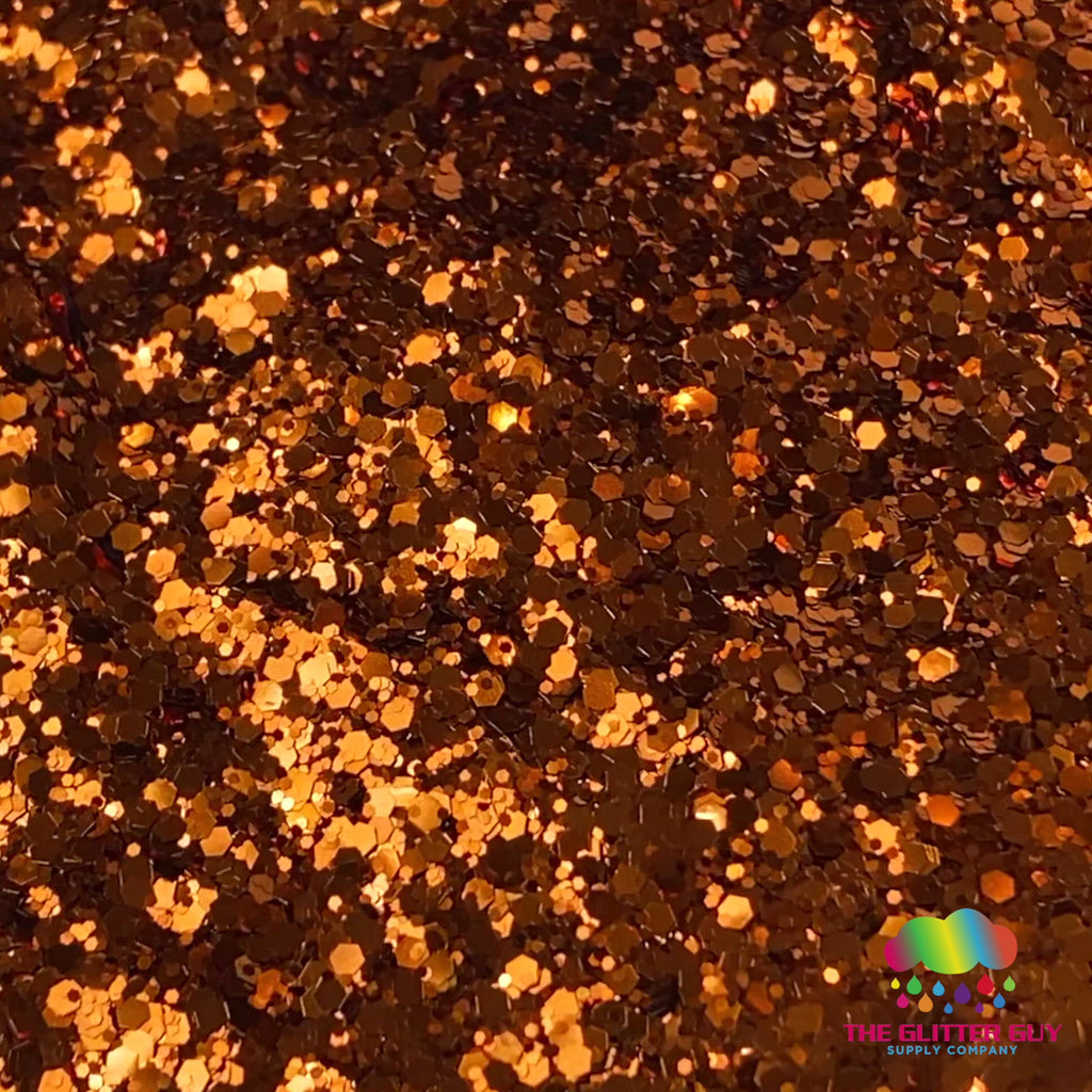 Penny's is a chunky mix of various sized metallic fall-esque burnt orange hexagonal cut glitter.