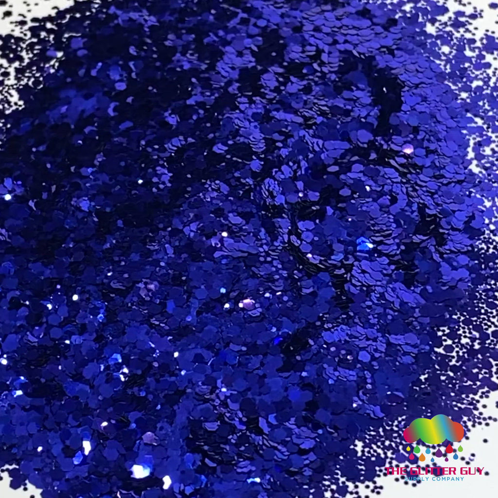Sapphire is a chunky mix of various sized metallic dark royal blue hexagonal cut glitter.