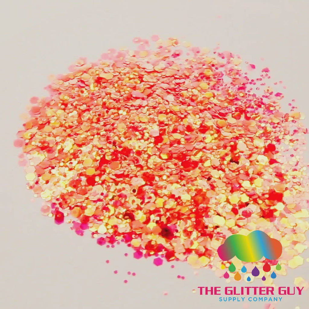 Solar Flare is a chunky mix of various sized orange Hack’d™ hexagonal cut glitter.